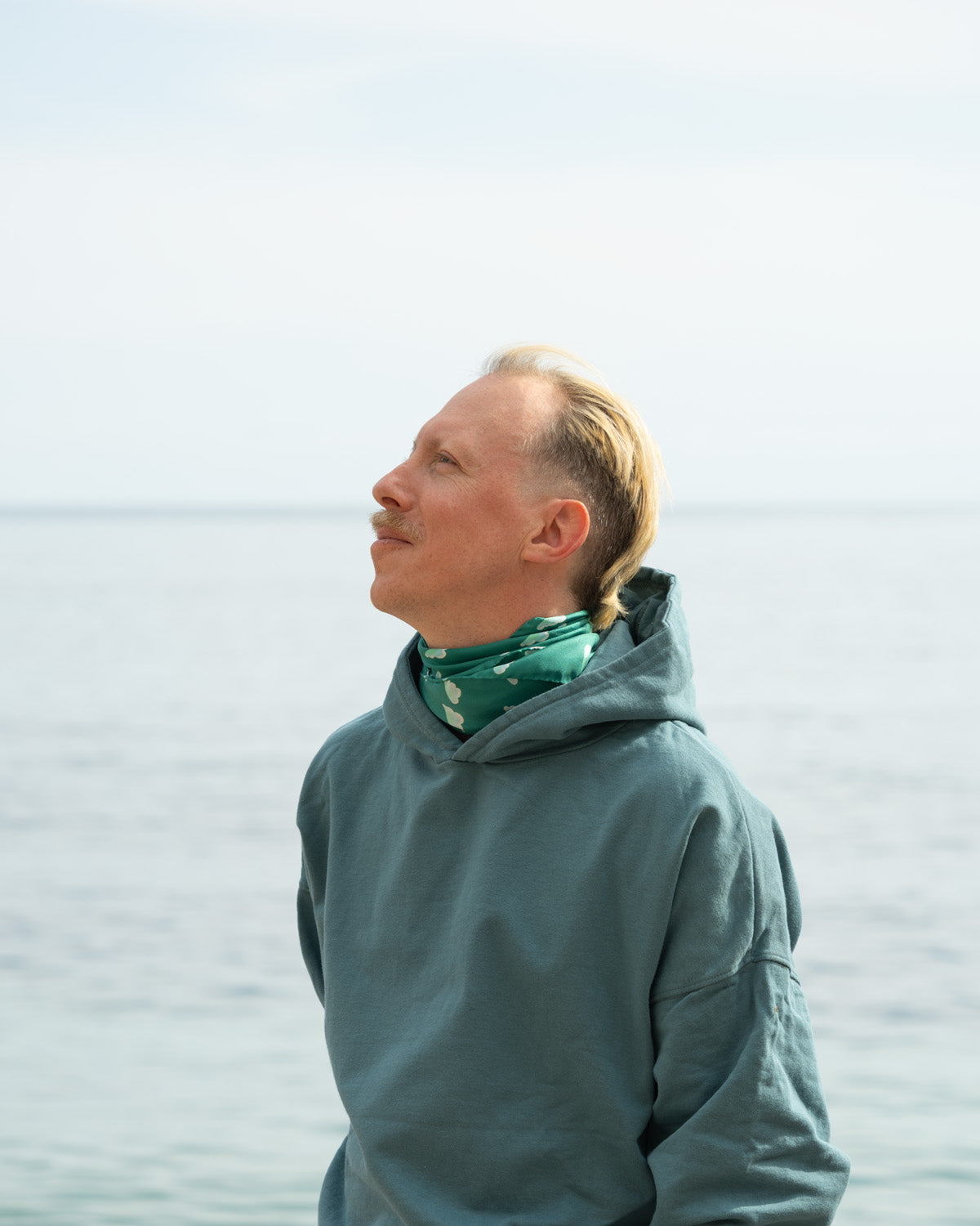 Das Seidentuch PIANA bringt die ruhige Weite des Himmels über dem Meer in die Kollektion Sky & Sea. Auf dem tiefen Teal schweben kleine, helle Wolken – wie am frühen Morgen an der Côte d’Azur, wenn Himmel und Meer langsam im Licht erwachen.