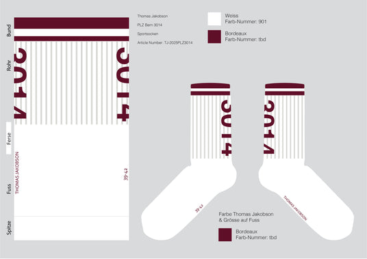Alle PLZ-Socken werden von Thomas Jakobson in Bern entworfen. Dabei fliessen viel Liebe zum Detail, lokale Inspiration und über zehn Jahre Erfahrung im Sockendesign mit ein.